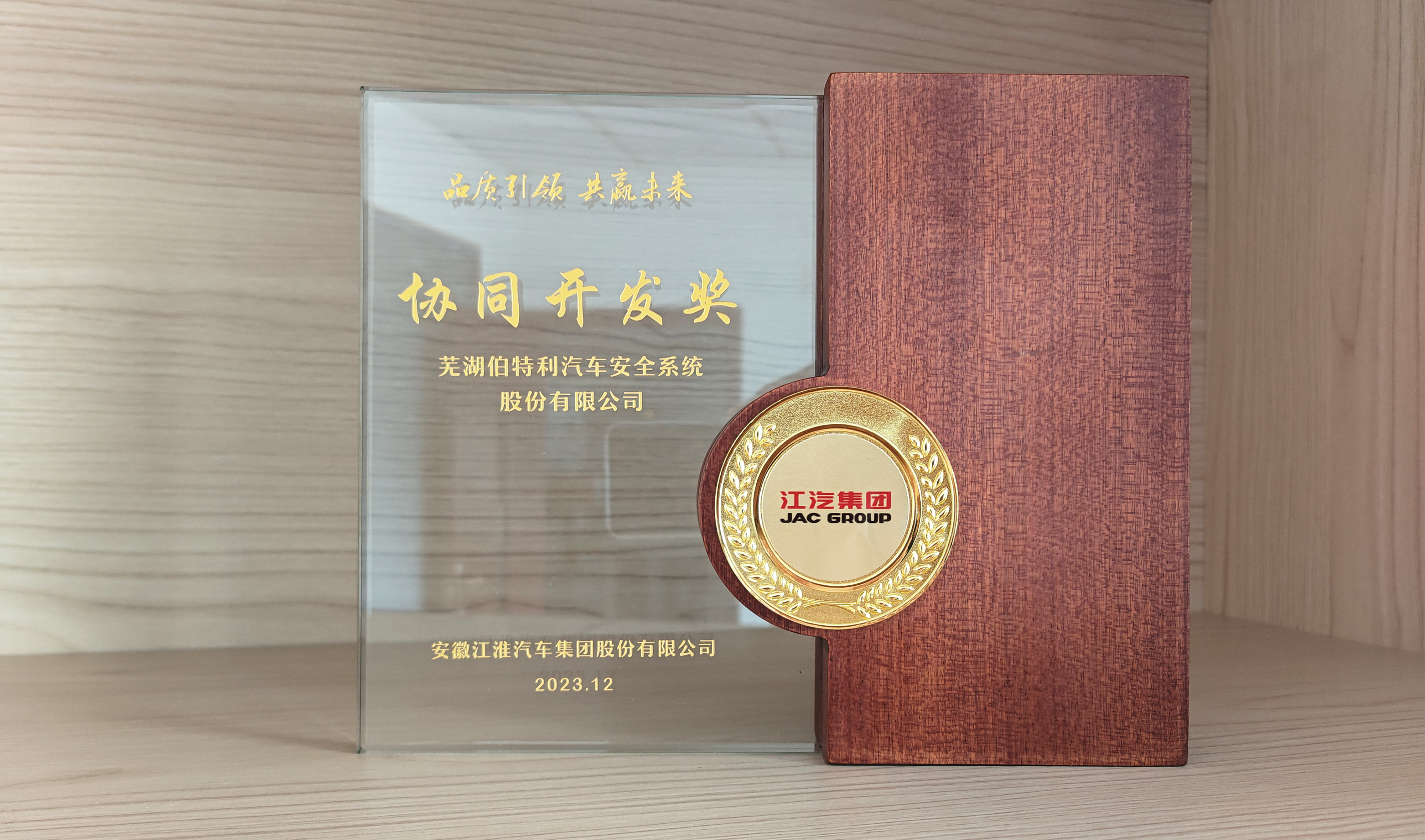 本次獲得江汽集團年度“協(xié)同開發(fā)獎”,我們感謝客戶的支持與認可。伯特利將基于雙方深厚的戰(zhàn)略合作友誼,持續(xù)為江汽集團提供更具競爭力的產(chǎn)品與服務(wù),助力江汽集團成為世界知名汽車企業(yè),實現(xiàn)共同發(fā)展!