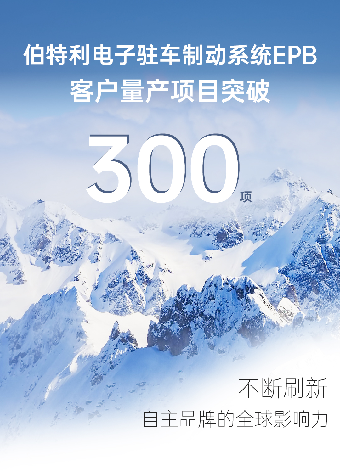 近日,伯特利第300個電子駐車制動系統(tǒng)(EPB)客戶項目順利量產。自2020年完成第100個客戶項目以來,短短四年間,項目數迅速突破300個,持續(xù)展現技術領先及規(guī)模化優(yōu)勢,在推動EPB國產化進程中勢如破竹、增勢如虹。